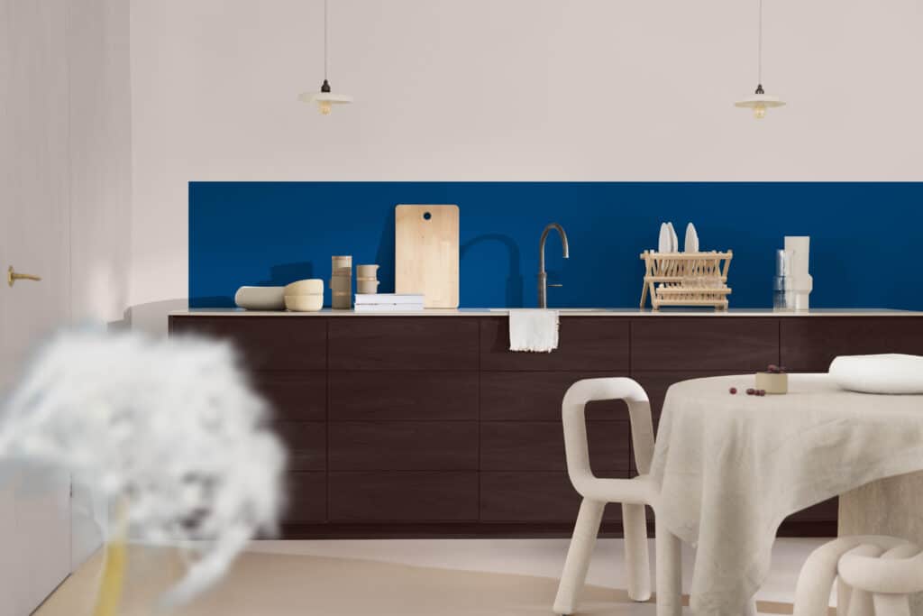 Ook BOSS paints en colora kiezen voor blauw, maar dan eerder in de verstillende variant. Connecting Blue, een koel vergrijsd lichtblauw, brengt rust en verbondenheid. De tint reflecteert zacht licht en creëert een open, luchtige sfeer. Ze voelt tegelijk helder en zacht aan en geeft een ruimte vertrouwen en balans. Rondom deze kleur ontwikkelde BOSS Paints verschillende collecties die variëren van troostende coconkleuren tot speelse en levendige combinaties. Connecting Blue fungeert telkens als de verbindende schakel en vormt een veelzijdige basis voor een uitgebalanceerde uitstraling.