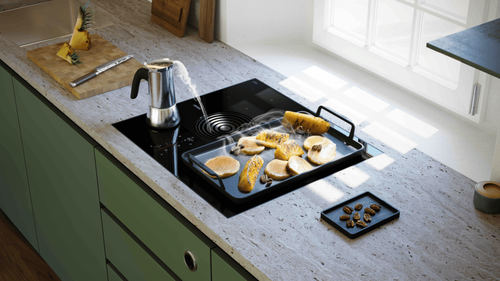 De opmars van de kookplaten met geïntegreerde afzuiging is natuurlijk niet zomaar uit de lucht komen vallen. Ze valt samen met de trend, al is het ondertussen een populaire vaste waarde geworden, van de open leefkeukens waarin rust primeert. Een dampkap aan het plafond kan dan als storend worden ervaren, al heb je natuurlijk mensen die net een opvallende eyecatcher willen. Wie dat liever niet heeft, kan dus perfect terecht bij de fabrikanten die geïntegreerde systemen hebben ontwikkeld. Daar waar de kookdampen ontstaan, worden ze ook verwijderd. Nog voor ze kunnen opstijgen, zijn ze dus al verdwenen. Het resultaat is een perfect zicht vanuit de keuken naar de rest van de leefruimte en andersom. Geen obstakels boven het werkblad. Het is vaak een bewuste keuze van de consument die een ongestoord visueel geheel wil. De afzuiging gebeurt tegen de natuurlijke luchtstroom in dus daar zijn best krachtige motoren voor nodig. Die motoren moeten dan ook stil genoeg zijn om een gesprek tussen verschillende mensen niet te overstemmen. Gelukkig zijn de R&D-departementen daar goed in geslaagd en leveren ze modellen af die doen wat ze moeten zonder overlast te veroorzaken.