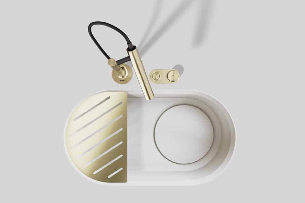 Cherlet besluit: “Net als bij een ijsberg wordt de ware omvang van een ontwerp pas duidelijk als je onder de oppervlakte kijkt. Het gaat erom hoe alle elementen een samenhangend geheel vormen. Bij ons is dat de BLANCO UNIT, een modulair systeem waarin alle onderdelen naadloos in elkaar passen. De BLANCO UNIT combineert een kraan, een spoelbak en een geoptimaliseerd afvalsysteem eronder tot één slimme oplossing. Ook de OOVALON kan je dus zo opnemen in een BLANCO UNIT.” Een opvallende blikvanger in dit geheel is wel de CapFlow, een oversized, rond afvoerrooster dat perfect aansluit bij het ovale ontwerp en de kleur van de spoelbak. Het meegeleverde metalen rooster is dan weer een praktisch, extra werkblad dat boven de spoelbak lijkt te zweven en op zijn beurt mooi in het totaalontwerp past.